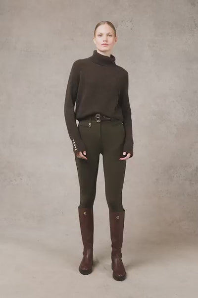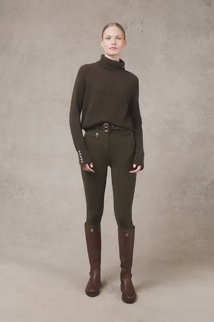 Sculpted for a contour fit, these high-waisted trousers are crafted from an ultra-soft, stretchy fabric for all-day comfort and flexibility. Featuring our signature HC gold buttons and hardware, they are made to move with you. Switch between wearing yours with boots or trainers, depending on the occasion.