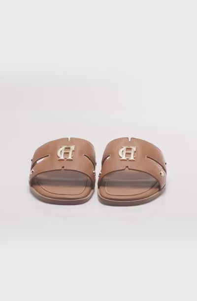 Meet our Monogram Slides, the perfect accompaniment for summer. Designed with a cushioned sole for comfort, sumptuously soft leather strap and eye catching cut out detail. This slide is adorned with our signature HC monogram and gold rivets.